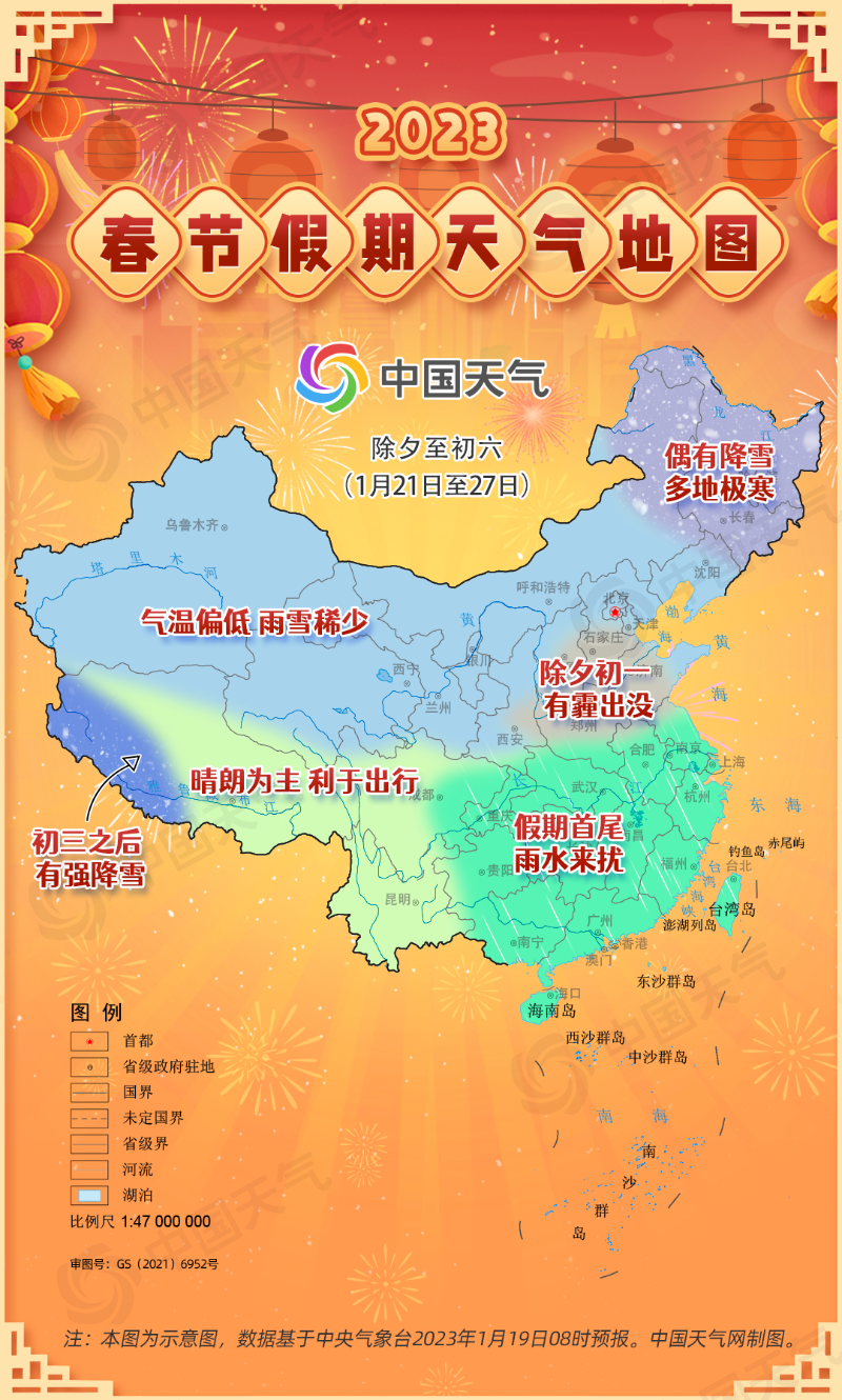 圖源:中國天氣網 據中國中國天氣網報道,預計2023年春節假期(除夕至初六)中國無大範圍低溫雨雪冰凍等災害天氣,冷空氣活動較為頻繁,中東部地區氣溫波動較大。 內蒙古、黑龍江部分地區將現極寒天氣。受冷渦影響,春節期間會有大片區域氣溫創今冬來新低,黑龍江中北部、內蒙古東部有不少地方還可能會打破1951年以來低溫歷史紀錄。 其中,黑龍江省會哈爾濱年初一、初二最低氣溫會降至-35℃,實力演繹北國冬日的天寒地凍。內蒙古東部的圖裡河連續4天最低氣溫-49℃,冷得罕見,當地從1951年以來僅有兩天最低氣溫達到-49℃以下。 除了東北地區,西北大部、華北北部春節期間氣溫也將會比常年同期偏低,最高氣溫在冰點線徘徊,最低氣溫跌至-10℃左右。另外這些地區雨雪稀少,春節期間在保暖防寒的同時要及時補水防燥。 南方多地將在雨水中迎新春,除夕、初一及初五前後會有陰雨,需注意出行安全。 除夕夜至初一,四川盆地南部、安徽、華南南部及沿海,北部灣、台灣海峽等地有大霧,局地能見度不足200米;初五、初六早晨時段,貴州南部、廣西、廣東西部等地有大霧。(完) 【編輯:王軼南】