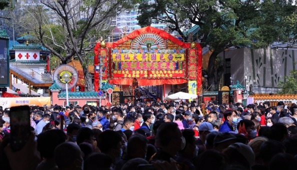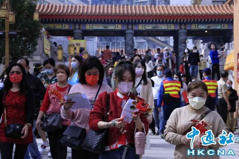 香港中通社1月22日電(記者張明臻)隨著防疫措施放寬,香港不少停辦的大型新春慶典都陸續回歸。因疫情暫停兩年的黃大仙祠年三十晚復辦“頭炷香”活動,不少善信入內等候子時上“頭炷香”;亦有市民大年初一早早到場,排隊等候上香,殿內殿外香火鼎盛。
