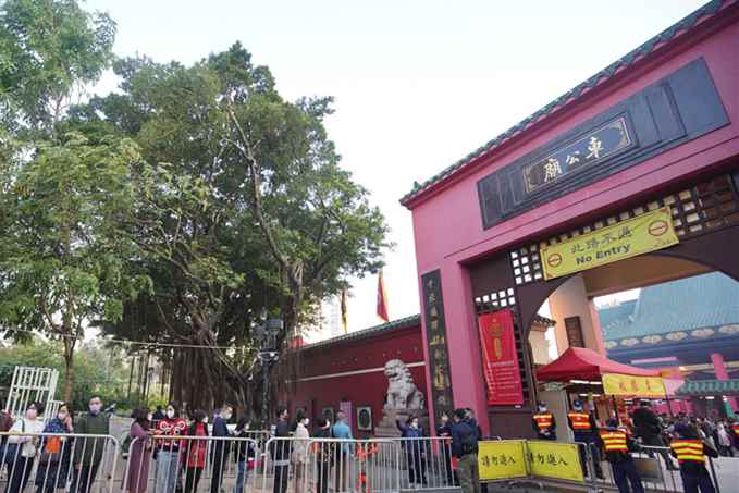香港中通社1月23日電 23日是大年初二,香港市民有到車公廟參拜、求簽的習俗。從當天早上8時至中午12時,沙田車公廟已錄得逾9000人次進廟。