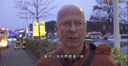德國救援人員現場救治傷者。圖源:NOW新聞 大批救護人員事發後趕抵現場,並出動直升機將傷者送院。