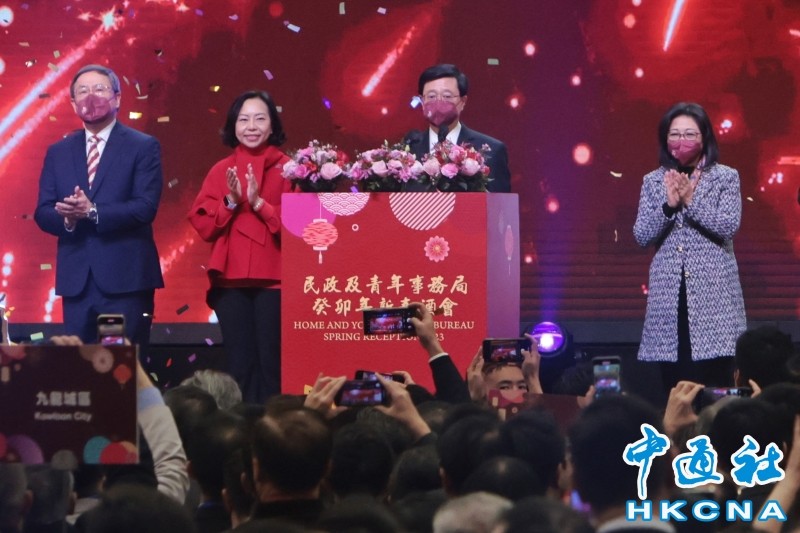 香港中通社1月27日電 (記者李明珠)香港特區政府民政及青年事務局27日舉辦癸卯年新春酒會,這也是新冠疫情三年來,特區政府首次復辦新春酒會。