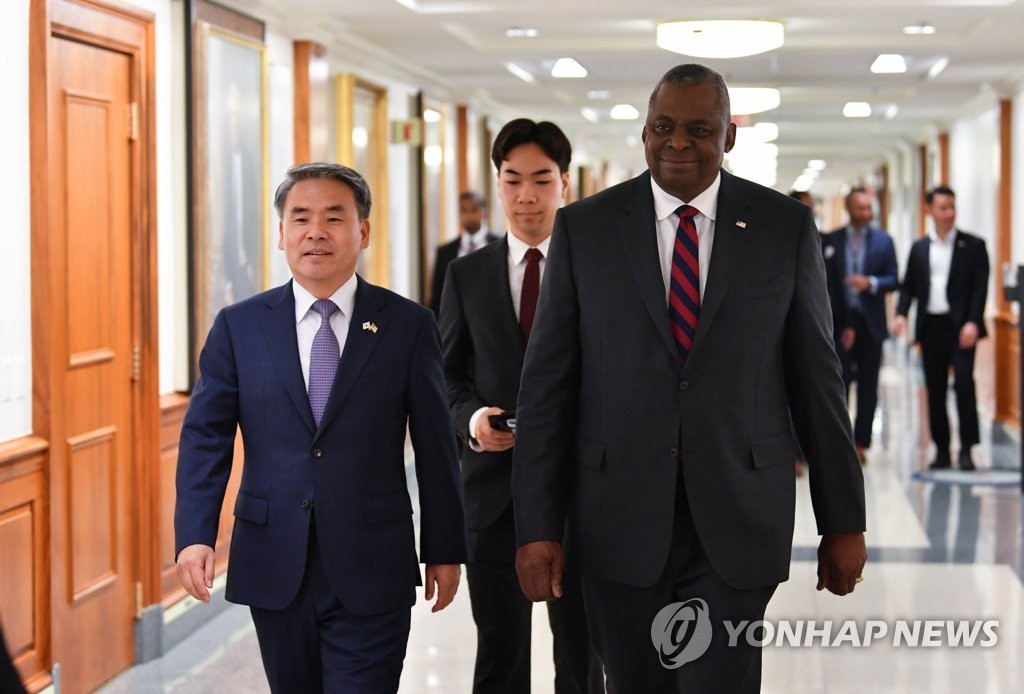 資料圖片:韓國國防部長官李鐘燮和美國國防部長奧斯汀。 圖源:韓聯社 據韓聯社報道,美國國防部長官奧斯汀31日表示,挑釁韓國就等同於挑釁美韓同盟。有評價稱,奧斯汀此言釋放出將強烈應對來自朝鮮的挑釁和威脅的信息。