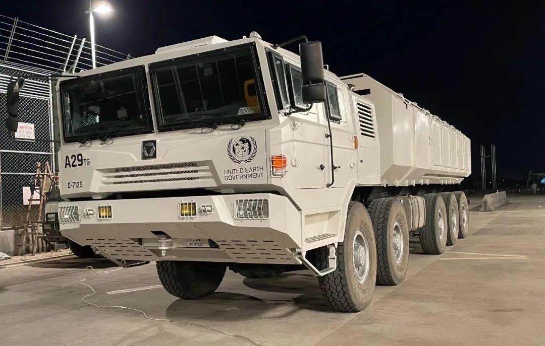 此外,電影中的越野底盤運輸系統,真正做到了1比1還原,連窗戶都是防彈的。