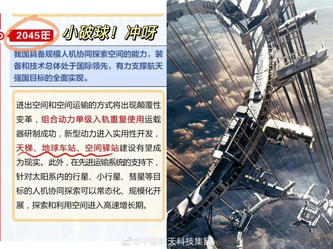 電影中,“太空電梯” 給觀眾留下深刻印象。中國航天科技集團對此表示:2045年,天梯、地球車站、空間驛站,有望成為現實。