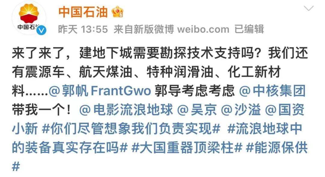 中核集團喊話《流浪地球》:“你們負責想象,我們負責實現”