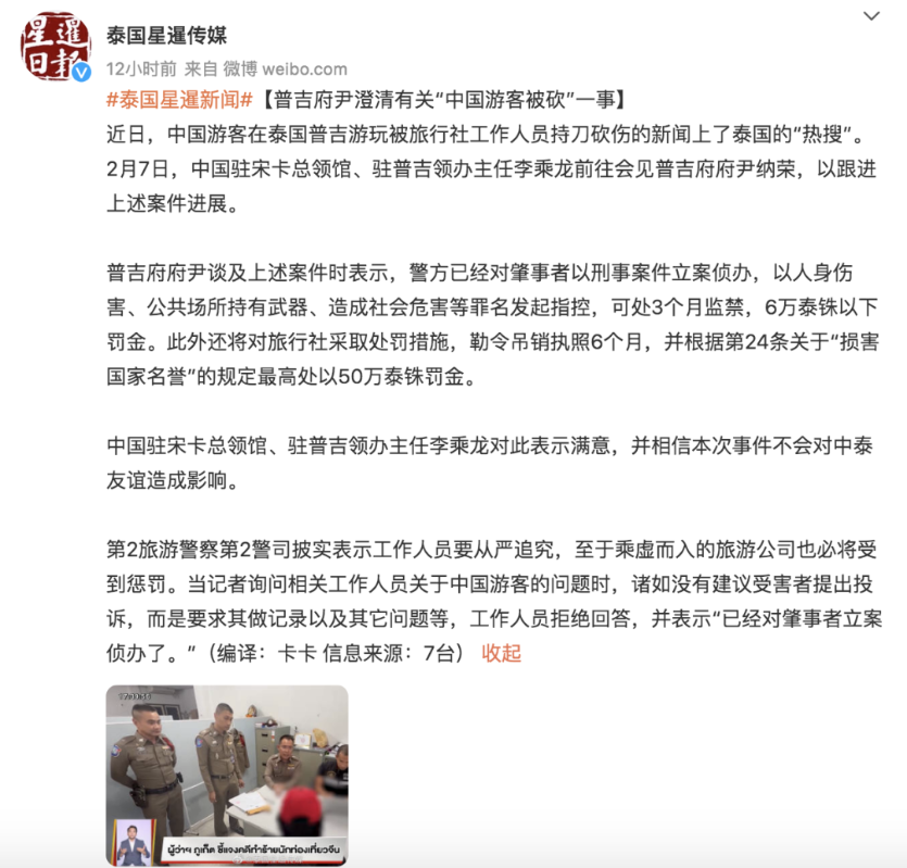 香港新聞網2月9日電 近日,一則“中國游客被泰國普吉島旅行社負責人割傷”的視頻,引發關注。