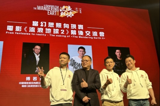 (香港中通社記者 張海德攝) 劉德華感謝各位支持,希望觀眾喜歡并一起為科技電影開啟大門。談及參演《流浪地球2》的初衷,劉德華稱,認識郭帆導演已有一段時間,也相信團隊的能力,早前就有加入《流浪地球2》的想法,在看過劇本之後,更希望能一起為科幻電影貢獻力量,為電影界提供新題材。 香港中通社記者搶到一個提問機會,問劉德華“是否也想過像古天樂的《明日戰記》一樣自己拍一部港產科幻片呢?” 他回答說:“先讓古天樂發展看看⋯⋯看看他有什麼經驗可以分享,我們未來再來(合作)。” 對於《流浪地球2》在香港的票房,劉德華直言,“有很大信心。” 劉德華在片中飾演研究數字生命的科學家,片中不僅要穿上沉重的太空衣,更要戴一副千度近視眼鏡,頭髮噴白,眼角受傷,更有一場水底戲。 他在首映禮現場透露,這麼大型的科幻片,拍攝的時間、方法、保護設施等,讓拍了40年戲的自己亦覺得非常新鮮、非常難忘。