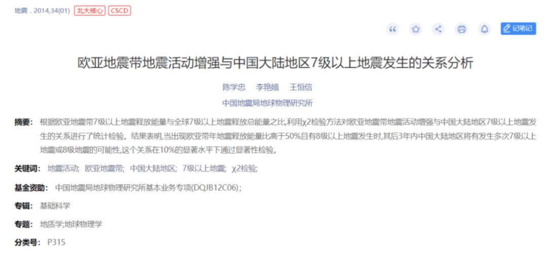 土耳其地震或致中國發生強震?專家回應香港新聞網2月13日電 一篇題為“國家地震局核心論文顯示:土敘地震可能致中國3年內發生7-8級強震”的文章昨(12日)在網絡上傳播很廣,並引起網民的關注。 地震專家表示,沒有必要對此感到恐慌,文章的結論沒有特別意義。土耳其強震對我國大陸短期發生較強地震無直接影響,全球地震活動水平也相對較低。 網文稱土耳其地震向我國預警 專家:不必恐慌 上述網文引用了一篇2014年發表於國家地震研究核心權威期刊《地震》上的論文觀點,該論文標題為“歐亞地震帶地震活動增強與中國大陸地區7級以上地震發生的關係分析”。