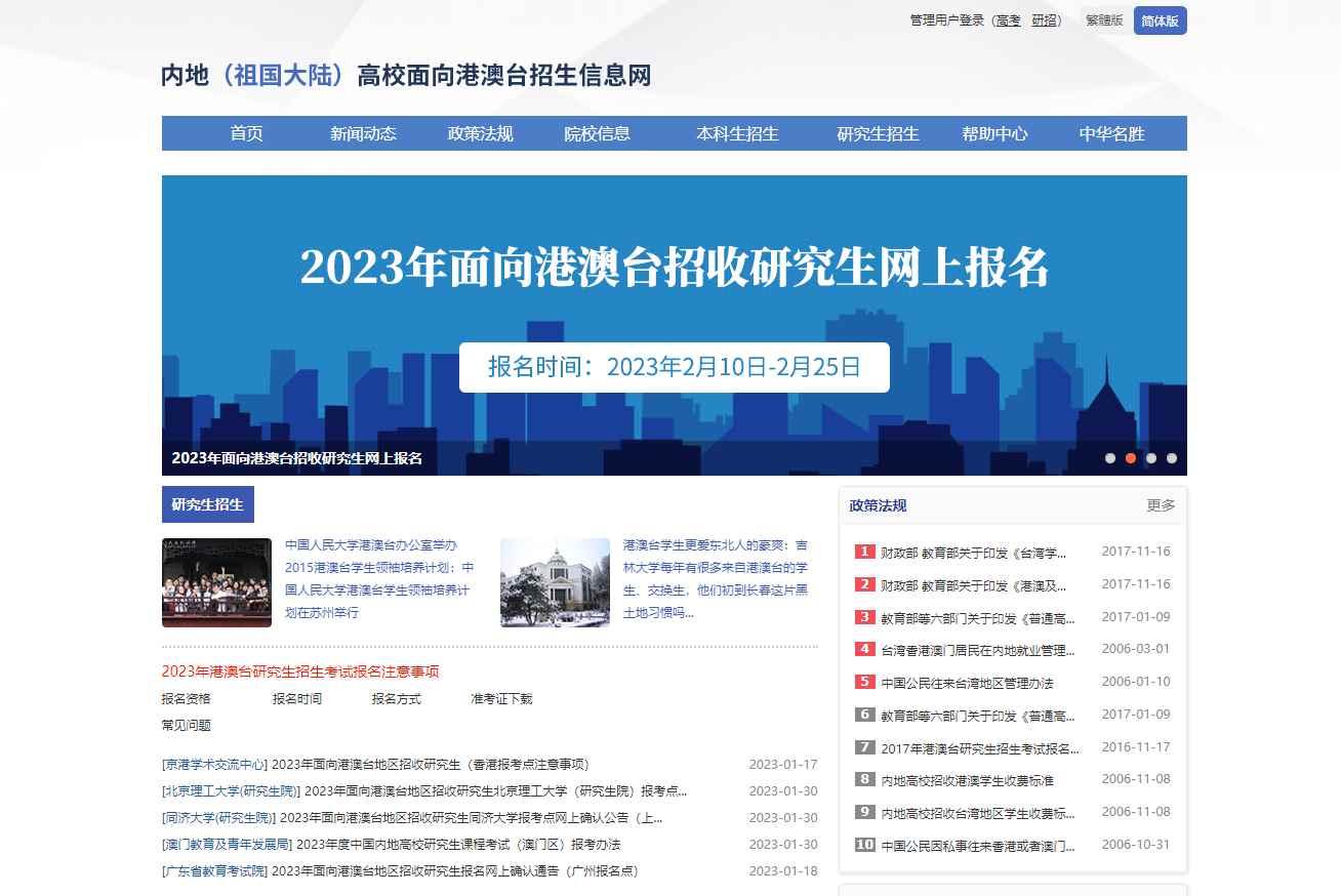 內地招港澳台研究生報考系統開啟分享到: