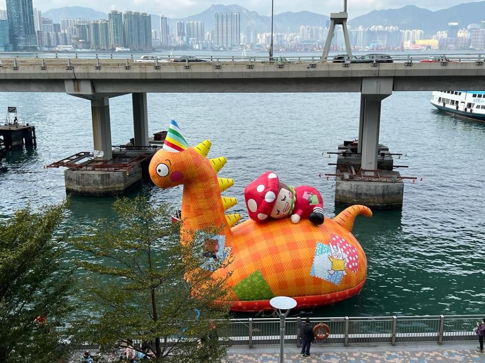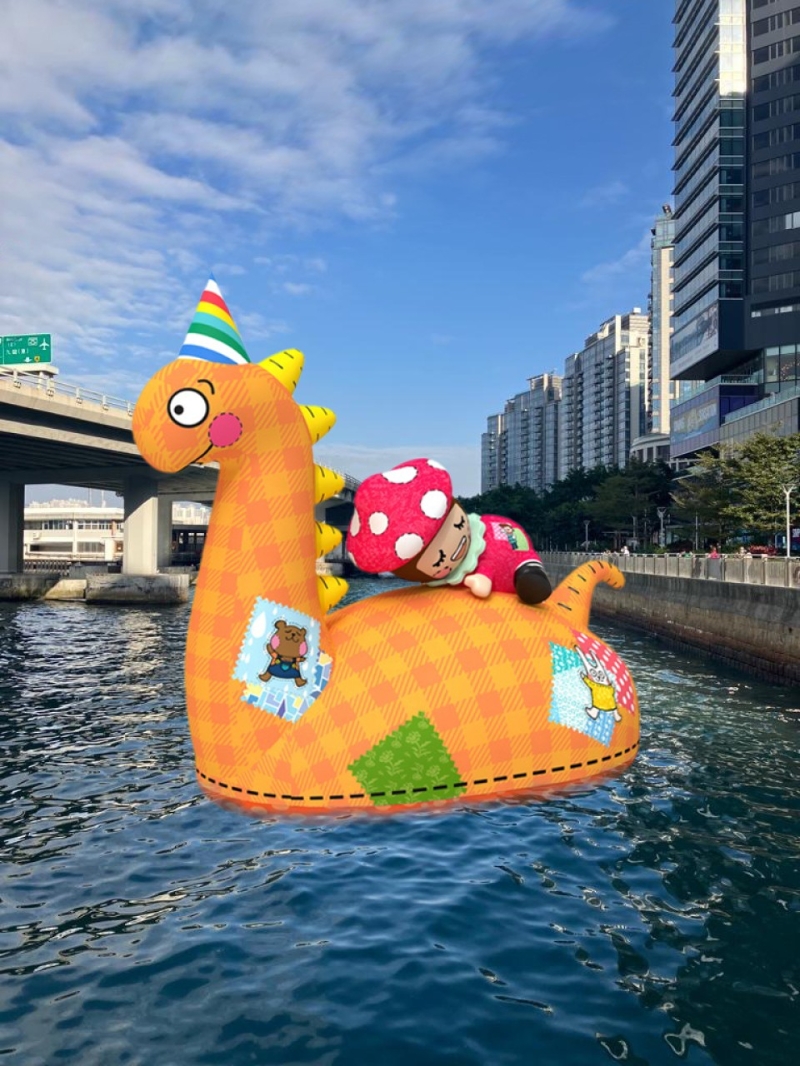 “東區文化節:雲遊東區”進行中 麥雅端為香港著名創作品牌Chocolate Rain創辦人兼設計總監。是次活動,她把Chocolate Rain的著名角色帶到東區,當中Dino的遠房親戚、分別代表東區和油街的“東東”和“油油”亦首次出現與大家見面。 12米高的巨型東東與法天娜Fatina從北角碼頭對開的海面出發,探遊東區。東區文化廣場設有5件麥雅端特別為東區文化節創作的大型裝置,佈置成一個各適其式的東區小天地,中間法天娜Fatina與8.2米高的油油在大型水泡中優哉悠哉,各式人物在晶瑩剔透的汽泡中,有的在品嚐香噴噴的港式奶茶、有的與電車玩耍、有的準備好調色盤和畫筆構思創作、有的在享受美味的菠蘿包。另一邊廂,在油街的故事村,亦會看見忙碌的Fatina與白菜、蘑菇等可愛公仔在歡迎大家。