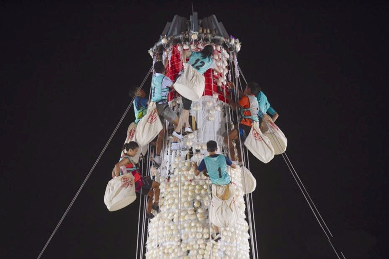 圖為2018年5月23日零時,香港長洲太平清醮的最高潮搶包山比賽在長洲島舉行,12名選手在3分鐘內摘取平安包。香港中通社資料圖 長洲搶包山是香港長洲島一年一度的傳統民俗活動。據說早於18世紀,島上發生瘟疫,後來得到玄天上帝的指引,瘟疫才停止。居民為酬謝神恩,便扮成神祇在街上遊行驅趕瘟神,每年舉行,成為太平清醮,並按照海陸豐習俗設三座由平安包積成的包山供奉北帝,在醮會結束後搶奪平安包。摘得包子越多,意味福氣越多。 現時,搶包山比賽的包子為塑膠製作。參賽名額為200人,須完成防墮安全訓練,方可參加比賽,最後選拔出12名選手參加決賽,須在指定時間內摘取平安包,不同範圍的平安包分數亦有不同,得分最高的男女健兒將獲勝;取得最多平安包的參賽者將可奪得“代代平安獎”。 18歲或以上、健康及體能良好人士可於2月27日起報名參加,截止日期為3月20日。(完) 【編輯:許豐悅】