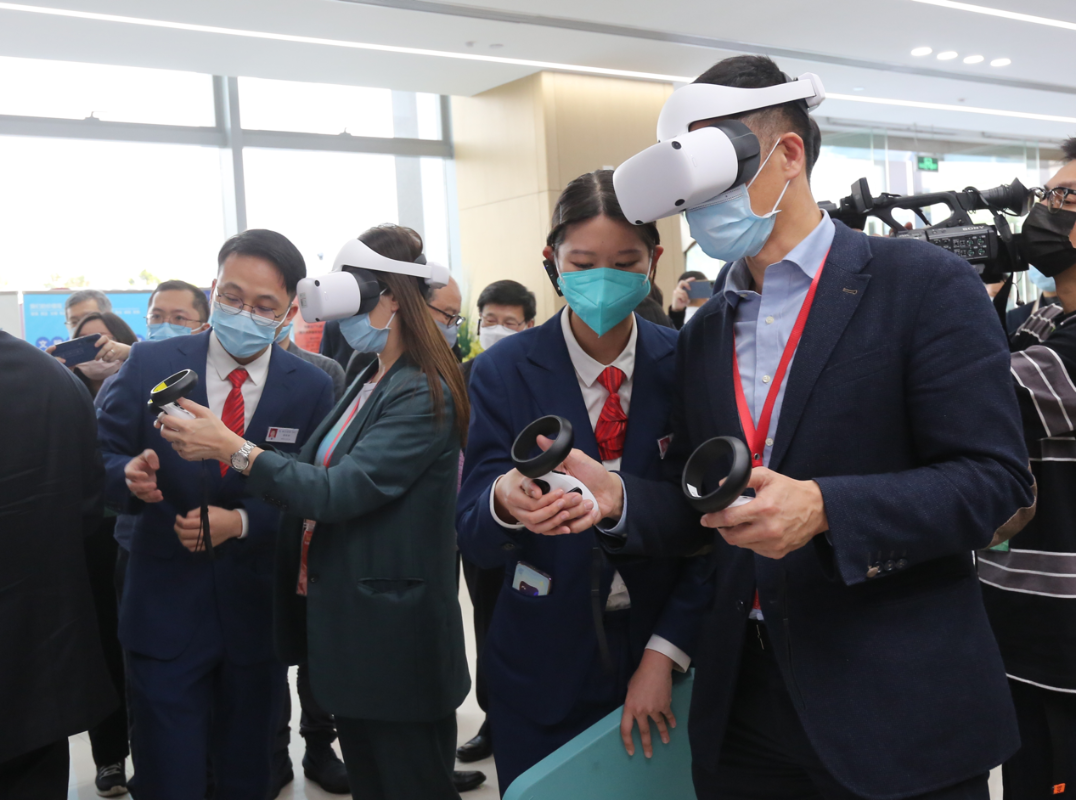 團員體驗“元宇宙”政務大廳。(圖片來源:中央政府駐港聯絡辦) 參訪團一行在廣州,重點考察了廣州市城市規劃展覽中心、天河區港澳青年之家總部創業基地、南沙政府服務中心“元宇宙”政務大廳、粵港澳青少年交流活動基地之南沙基地,切身體驗廣州“立足灣區、協同港澳、面向世界”的戰略規劃和為香港市民特別是香港青年在大灣區內地城市創新創業提供的務實高效的服務。