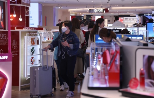 (3月1日,香港街頭不少市民摘掉口罩出行。香港中通社記者 曹文毓攝) 在香港國際機場,大部分旅客仍佩戴口罩,少數旅客摘掉口罩出行;有海外抵港旅客未戴口罩步出接機大堂,與同行者說笑,成為疫情以來少見的一幕。