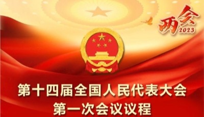 全國兩會│第十四屆全國人民代表大會第一次會議日程公布第十四屆全國人民代表大會第一次會議日程 2023年3月5日至13日 (2023年3月4日第十四屆全國人民代表大會第一次會議主席團第一次會議決定) 3月5日(星期日) 上午9時 代表大會第一次全體會議(開幕會) 1.聽取國務院總理李克強關於政府工作的報告 2.審查國務院關於2022年國民經濟和社會發展計劃執行情況與2023年國民經濟和社會發展計劃草案的報告、2023年國民經濟和社會發展計劃草案 3.審查國務院關於2022年中央和地方預算執行情況與2023年中央和地方預算草案的報告、2023年中央和地方預算草案 4.聽取全國人大常委會副委員長王晨關於中華人民共和國立法法修正草案的說明 5.表決大會關於設立第十四屆全國人大專門委員會的決定草案 6.表決大會關於第十四屆全國人大專門委員會主任委員、副主任委員、委員人選的表決辦法草案 7.表決第十四屆全國人大憲法和法律委員會主任委員、副主任委員、委員人選名單草案 8.表決第十四屆全國人大財政經濟委員會主任委員、副主任委員、委員人選名單草案 下午3時 代表團全體會議審議政府工作報告 3月6日(星期一) 上午9時 代表小組會議審議政府工作報告 下午3時 代表小組會議審查計劃報告和草案、預算報告和草案 3月7日(星期二) 上午9時 代表小組會議審議立法法修正草案 下午3時 代表大會第二次全體會議 1.聽取全國人大常委會委員長栗戰書關於全國人民代表大會常務委員會工作的報告 2.聽取最高人民法院院長周強關於最高人民法院工作的報告 3.聽取最高人民檢察院檢察長張軍關於最高人民檢察院工作的報告 4.聽取國務委員兼國務院秘書長肖捷關於國務院機構改革方案的說明 3月8日(星期三) 上午9時 代表小組會議審議全國人大常委會工作報告 下午3時 代表小組會議審議關於修改立法法的決定草案、國務院機構改革方案、第十四屆全國人大一次會議選舉和決定任命的辦法草案,推選監票人 3月9日(星期四) 上午9時 代表小組會議審議最高人民法院工作報告、最高人民檢察院工作報告 下午3時 代表團全體會議審議關於國務院機構改革方案的決定草案,醞釀協商中華人民共和國主席的人選,中華人民共和國中央軍事委員會主席的人選,全國人大常委會委員長、副委員長、秘書長的人選,中華人民共和國副主席的人選 3月10日 (星期五) 上午9時 代表大會第三次全體會議 1.表決關於國務院機構改革方案的決定草案 2.表決第十四屆全國人大一次會議選舉和決定任命的辦法草案 3.表決總監票人、監票人名單草案 4.選舉中華人民共和國主席 5.選舉中華人民共和國中央軍事委員會主席 6.選舉第十四屆全國人大常委會委員長、副委員長、秘書長 7.選舉中華人民共和國副主席 下午3時 代表團全體會議醞釀國務院總理的人選,中華人民共和國中央軍事委員會副主席、委員的人選;醞釀協商國家監察委員會主任、最高人民法院院長和最高人民檢察院檢察長的人選,全國人大常委會委員的人選 3月11日 (星期六) 上午9時 代表大會第四次全體會議 1.決定國務院總理的人選 2.決定中華人民共和國中央軍事委員會副主席、委員的人選 3.選舉國家監察委員會主任 4.選舉最高人民法院院長 5.選舉最高人民檢察院檢察長 6.選舉第十四屆全國人大常委會委員 下午3時 代表團全體會議醞釀國務院副總理、國務委員、各部部長、各委員會主任、中國人民銀行行長、審計長、秘書長的人選,全國人大民族委員會、監察和司法委員會、教育科學文化衛生委員會、外事委員會、華僑委員會、環境與資源保護委員會、農業與農村委員會、社會建設委員會等專門委員會主任委員、副主任委員、委員的人選 3月12日 (星期日) 上午9時 代表大會第五次全體會議 1.決定國務院副總理、國務委員、各部部長、各委員會主任、中國人民銀行行長、審計長、秘書長的人選 2.分別表決全國人大民族委員會、監察和司法委員會、教育科學文化衛生委員會、外事委員會、華僑委員會、環境與資源保護委員會、農業與農村委員會、社會建設委員會等專門委員會主任委員、副主任委員、委員人選名單草案 下午3時 代表小組會議審議關於政府工作報告、年度計劃、年度預算、全國人大常委會工作報告、最高人民法院工作報告、最高人民檢察院工作報告的六個決議草案 3月13日 (星期一) 上午9時 代表大會第六次全體會議(閉幕會) 1.表決關於政府工作報告的決議草案 2.表決全國人民代表大會關於修改《中華人民共和國立法法》的決定草案 3.表決關於2022年國民經濟和社會發展計劃執行情況與2023年國民經濟和社會發展計劃的決議草案 4.表決關於2022年中央和地方預算執行情況與2023年中央和地方預算的決議草案 5.表決關於全國人民代表大會常務委員會工作報告的決議草案 6.表決關於最高人民法院工作報告的決議草案 7.表決關於最高人民檢察院工作報告的決議草案 8.中華人民共和國主席講話 9.第十四屆全國人大常委會委員長講話 閉 幕 【編輯:刘春】
