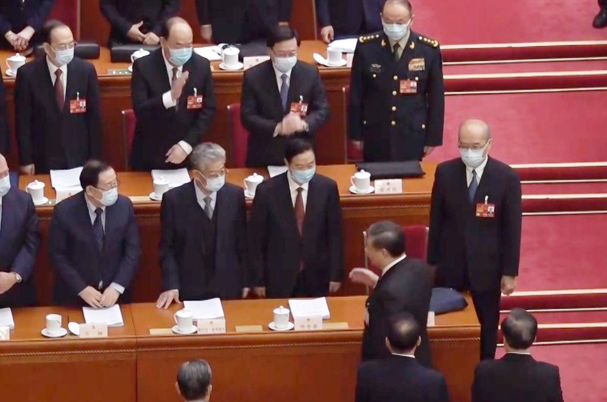 當日開幕會後,習近平起身離開會場時,與台上的代表點頭問好。期間習近平在經過李家超所在區域時,一度停下腳步並向李家超打招呼,而李家超亦向習近平抱拳示禮。(完) 【編輯:孟宜君】
