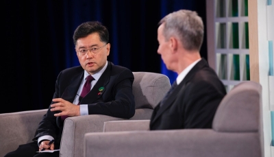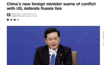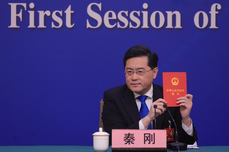 中國外交部長秦剛引用《中華人民共和國憲法》序言里的兩句話。香港中通社記者 許其皓攝 【秦剛:如果美方繼續沿著錯誤道路狂飆,再多護欄也擋不住脫軌翻車】 美國全國廣播公司記者:秦部長,您曾寫到:“一個健康穩定的中美關係攸關兩國人民和我們星球的前途命運。”鑒於雙方在各種問題上的利益分歧不斷擴大,還有可能發展健康穩定的中美關係嗎?或者,您打算如何使之成為可能?除了中國的核心利益,您是否也考慮過美國的核心利益? 秦剛:前段時間中美關係發生了無人飛艇事件。這完全是一起因不可抗力導致的偶發意外事件,事實和性質都很清楚,連美方也認為不構成現實威脅。然而,美方卻違反國際法精神和國際慣例,有罪推斷,過度反應,濫用武力,藉題發揮,製造了一場本可以避免的外交危機。 從偶然中可以看到必然,那就是美國對華認知和定位出現了嚴重偏差,把中國當成最主要對手和最大地緣政治挑戰。第一粒紐扣扣錯了,導致美國對華政策完全脫離了理性健康的正軌。 美方聲稱要“競贏”中國但不尋求衝突。但實際上,美方的所謂“競爭”,就是全方位遏制打壓,就是你死我活的零和博弈。 美方口口聲聲說要遵守規則,但如同兩位運動員在奧運田徑場上賽跑,一方不是想著如何跑出自己的最好成績,而總是要去絆倒對方,甚至想讓對方參加殘奧會,這不是公平競爭,而是惡意對抗,犯規了! 美方所謂要給中美關係“加裝護欄”“不衝突”,實際上就是要中國打不還手,罵不還口,但這辦不到! 如果美方不踩刹車,繼續沿著錯誤道路狂飆下去,再多的護欄也擋不住脫軌翻車,必然陷入衝突對抗。誰來承擔其災難性的後果?!這樣的競爭,就是以兩國人民根本利益乃至人類前途命運為賭注的豪賭,中方當然堅決反對。 【秦剛斥美國公開聲稱要“塑造中國的周邊戰略環境”:注定走不遠、行不通】 新華社記者:美國聲稱要“塑造中國周邊戰略環境”,一個重要抓手就是“印太戰略”。一些地區國家受到很大壓力。近期有媒體評論認為,隨著中國經濟下行壓力增加,地區國家“安全上依靠美國,經濟上依靠中國”,越來越難以持續。請問您如何看待這個問題? 秦剛:美國的“印太戰略”標榜自由開放,實際上拉幫結夥,搞各種封閉排他的小圈子;號稱維護地區安全,實際上挑起對抗,策劃“亞太版北約”;宣揚促進地區繁榮,實際上要“脫鈎斷鏈”,破壞地區一體化進程。 美國公開聲稱要“塑造中國的周邊戰略環境”,這恰恰暴露了“印太戰略”圍堵中國的真實目的,其最終結果只會導致衝擊以東盟為中心開放包容的地區合作架構,損害地區國家的整體和長遠利益,注定走不遠、行不通。 我注意到最近不少地區國家領導人表示,東盟不能成為任何外部勢力的代理人,不能陷入大國博弈的漩渦。亞洲應該成為合作共贏的舞台,而不是地緣博弈的棋盤。任何冷戰絕不容在亞洲重演,烏克蘭式的危機絕不容在亞洲複製。 至於說安全上、經濟上要靠誰?我的看法是,還是要同舟共濟,患難與共,共謀安全,共促發展,共築更加緊密的周邊命運共同體。 有人擔心中國經濟前景,我認為大可不必。近期,一些國際機構紛紛上調今年中國經濟增長預期。我們自己的預期也是在5%左右,這將遠遠高於其他主要經濟體。過去一年,中國實際使用外資增長8%,引資規模居全球前列。中國發展高層論壇和博鰲亞洲論壇年會即將舉行,今年天津夏季達沃斯論壇也將舉辦,就我瞭解,前來參會的各國企業家爭先恐後。 最近,我和多位地區國家的外長交流,大家期待最大的就是發展,談論最多的就是合作。我相信,中國加快推進高質量發展,擴大高水平對外開放,構建新發展格局,必將給各國特別是地區國家提供新的機遇。 【秦剛:中俄貿易中用什麼貨幣?答案很簡單,什麼貨幣好用就用什麼】 俄羅斯塔斯社記者:您好。中俄關係是世界關注的焦點,您如何看待兩國關係發展走向?俄中關係能否為國與國關係提供新的範式?中國國家主席是否將於兩會後訪問俄羅斯?未來俄中雙邊貿易中是否有可能放棄使用美元或歐元?謝謝。 秦剛:你提到大國關係範式,這是觀察中俄關係一個很好的視角。大國交往,是搞封閉排他的集團政治,還是坦坦蕩蕩的君子之交?中俄成功走出了一條大國戰略互信、鄰里友好的相處之道,樹立了新型國際關係的典範。 有的國家習慣用冷戰結盟的濾鏡看中俄關係,看到的不過是自己的倒影。中俄關係建立在不結盟、不對抗、不針對第三方基礎上,既不對世界上任何國家構成威脅,也不受任何第三方的干擾和挑撥。 中俄攜手,世界多極化和國際關係民主化就有了動力,全球戰略平衡與穩定就有了保障。世界越是動蕩不安,中俄關係越應穩步向前。 元首交往是中俄關係的指南針和定盤星。我們相信,在兩國元首戰略引領下,中俄新時代全面戰略協作夥伴關係必將在更高水平上不斷前行。 至於你提到中俄貿易中用什麼貨幣?答案很簡單,什麼貨幣好用、安全又信得過,就用什麼貨幣。國際貨幣不應成為單邊制裁的殺手鐧,更不應成為霸淩脅迫的代名詞。 【中方是否計劃加強與歐盟的政治和商貿關係?秦剛回應】 法新社記者:鑒於過去幾個月中美關係緊張,中方是否計劃加強與歐盟的政治和商貿關係? 秦剛:中歐是兩大文明、兩大市場、兩大力量。中歐開展交往完全是基於彼此戰略利益獨立作出的選擇。中歐關