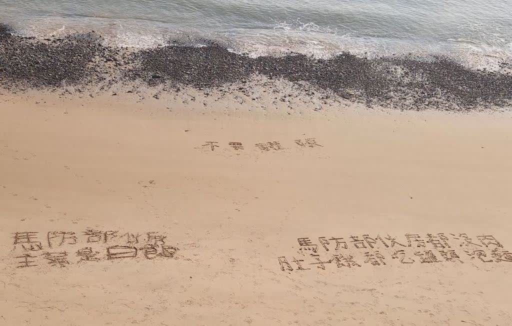 通說:這個島缺“肉”,軍人“求救”香港新聞網3月7日電近日來,台灣因“雞蛋荒”頻繁登上熱搜。無獨有偶,台軍出現了“肉荒”。 幾日前,一組被標記拍攝於離福州馬尾不遠的馬祖西莒島的照片引起關注。這組照片顯示,駐防馬祖的台軍疑似在沙灘上寫下“求救”信號——“夥房沒肉”“主菜是白飯”“肚子餓吃罐頭泡面”等字樣。