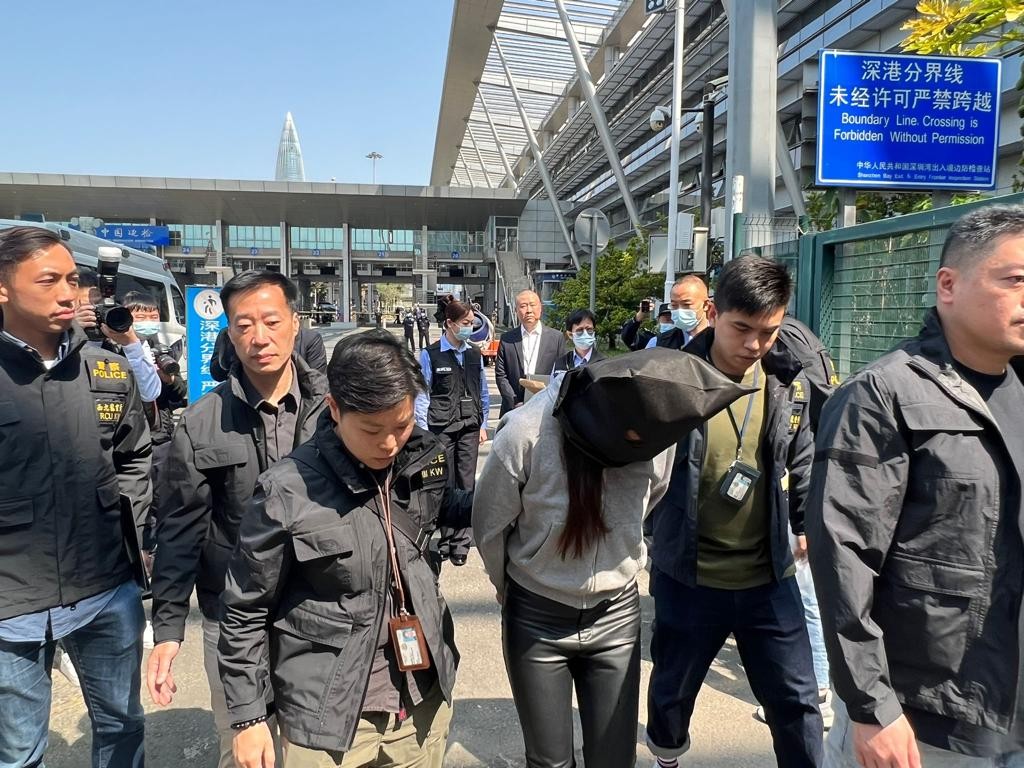 內地執法人員昨日(5)於深圳灣口岸,將女疑犯移交香港警方。香港警方提供 被捕的29歲女疑犯早前潛逃內地後,被內地執法人員截獲。內地執法人員昨日(5)於深圳灣口岸,將女疑犯移交香港警方。西九龍總區重案組繼續調查案件。 消息指,該名女疑犯姓潘,洋名Irene。她涉嫌向死者前夫鄺港智,介紹遊艇公司職員林舜。據報,潘女為一名“KOL”,活躍於社交平台,有逾3萬名粉絲。翻查其過往的社交平台帖文,曾與不少名人合照,包括古天樂、關楚耀等。 警方昨晚將潘女押至其寓所蒐證,逗留約半小時後離開。(完) 【編輯:孟宜君】