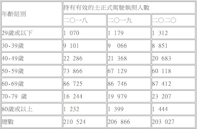 (立法會文件) 在香港,根據規定,年過70歲司機申請續領的士牌照時,須先找註册醫生簽發體格檢驗證明書。不過,相關體檢機制仍維持30多年前的規定,體檢項目相當寬鬆,更傾向為評估而非正式體檢。 另外,香港至少每三年為年長司機進行一次體檢的頻率太低。內地規定70歲或以上司機必須每年體檢;新加坡限制的士司機年齡在75歲以下,50歲開始須每兩年醫學檢查一次,65歲起每年一檢,70歲後還須接受額外體格評估。 因此,當局須盡快修訂過時規例,確保年長司機有確切能力進行安全駕駛,減少交通意外。但這隻能治標,不能治本。有分析認為,在保障本地高齡勞工有工開前提下,需持續為行業注新血才是長遠之計。不過,收入低、風險高、職業病、缺乏發展空間等原因,讓不少年輕人“望而卻步”。