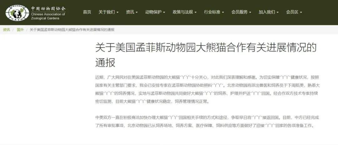 香港新聞網3月9日電 中國動物園協會網站8日發佈通報稱,為切實保障在美國孟菲斯動物園的大熊貓“丫丫”健康狀況,按照國家有關主管部門要求,中國動物園協會已安排專家在孟菲斯動物園協助照料“丫丫”。北京動物園將派出獸醫和飼養員於下周抵美,熟悉大熊貓“丫丫”的飼養情況,實地與孟菲斯動物園共同做好大熊貓“丫丫”的飼養、護理并護送“丫丫”回國。經合作雙方技術專家持續密切監測,目前大熊貓“丫丫”健康狀況穩定,飼養管理情況正常。