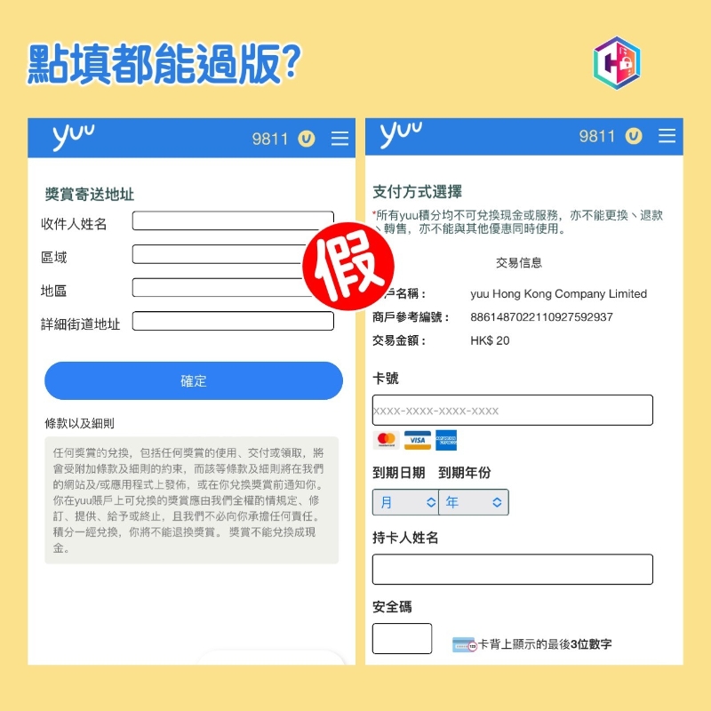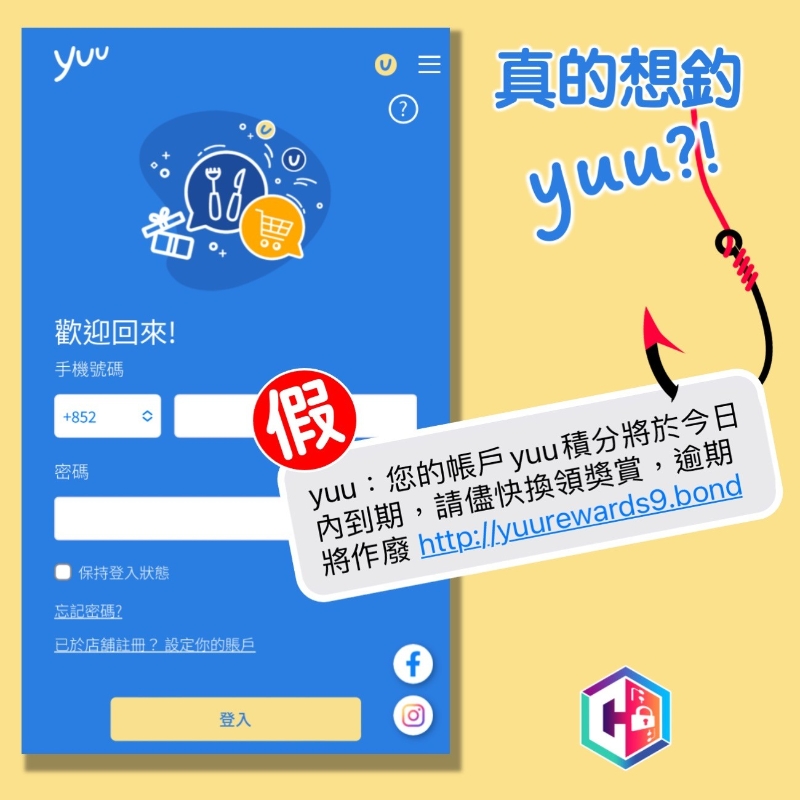 守網者fb圖片。 警方昨日在Facebook專頁“守網者”中指出,有騙徒假冒“yuu”發出釣魚短訊,內容聲稱“您的帳戶yuu積分將於今日內到期,請盡快換領獎賞,逾期將作廢”,以誘騙市民交出個人資料,包括信用卡資訊等,或取得“yuu”登入資料以盜用積分 。 警方指出,涉嫌假冒yuu的網站有諸多漏洞,包括與真的“yuu”應用程式版面不同、隨便輸入登入名稱或密碼都能登入、任何帳戶登入都顯示有相同積分結餘、填入無效信用卡資料亦能操作。 警方強調,如有懷疑應立即向官方機構查證,亦可使用“防騙視伏器”或“防騙視伏App”,輸入可疑網址查證。 “yuu”官方昨日表示,最近有不法之徒利用偽冒 yuu 的詐騙短訊,虛假 yuu 網頁及其他非法手段,企圖獲取 yuu 會員之個人資料,他們已經向警方報告相關的可疑活動,讓警方作進一步調查。另外,“yuu”於昨晚8時起自動登出所有會員帳戶,用戶需要重設密碼才可重新登入。(完) 【編輯:孟宜君】