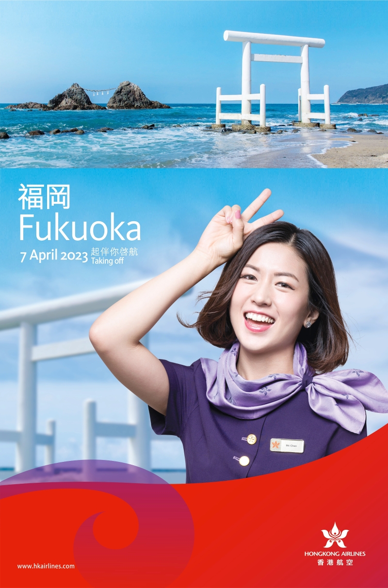 香港航空很高興首次提供直飛福岡的服務,將這個迷人的港口城市加入香港航空不斷拓展的航線網絡中。日本是港人出行的首選,加上日本放寬入境限制,提供前往福岡直航服務將為旅客提供更多選擇。 香港航空隨著市場環境不斷變化而適時調整網線網絡。公司預期旅行需求快速增加,宣佈將於4月17日復飛每週5班來往印尼峇里島及每日1班來往上海虹橋之航班。顧客現可於各大旅行社代理購買機票,官網售票服務將於稍後時間公佈。