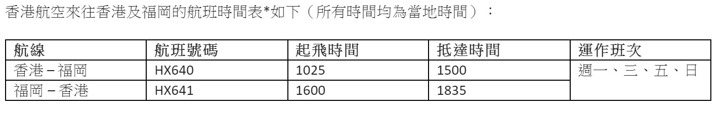 來往香港及福岡航班時間表 【編輯:黃璇】