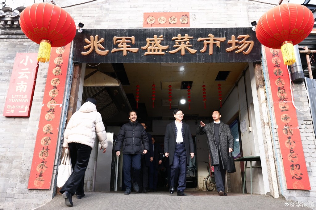 李家超親切與商戶打招呼聊天。李家超微博圖片 翻查資料,“兆軍盛菜市場”位於東城區大佛寺東街,早於2002年12月開業,總營業面積為1000平方米,是隆福寺周邊最大的菜市場。它於2017年完成升級改造,對菜市場整體外貌、水路、電路、機器設備等軟硬件環境都進行了更新。 據了解,李家超今早會到訪外交部。一行人將於18日回港。(完)
