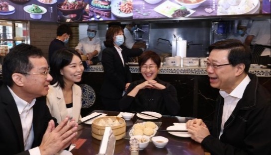 香港新聞網3月16日電 香港行政長官李家超繼續展開北京訪問行程。繼今早與和駐京辦事處人員共晉老北京早餐後,他又到附近一個菜市場閒逛。