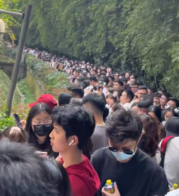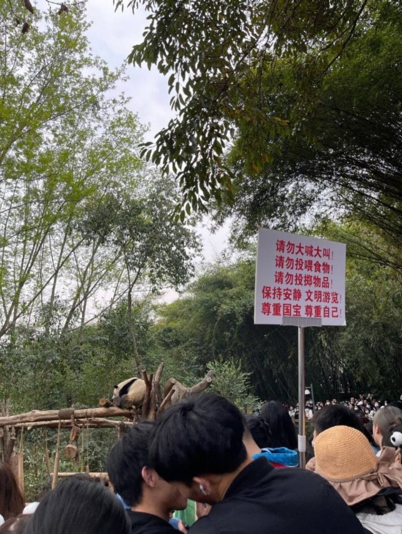 人山人海。網圖 然而不管保安大哥如何勸說,人潮只增不減。根據遊客現場拍攝的照片及影片可見,“花花”所處的區域裡三層外三層,包得嚴嚴實實。部分人為了看“花花”一面,不惜冒著危險爬樹;部分人為了可以紀錄下“花花”的“盛世美顏”,開閃光燈拍照;部分人心痛“花花”平日搶吃搶不過弟弟“和葉”,竟把食物丟進園內,企圖投餵“花花”。