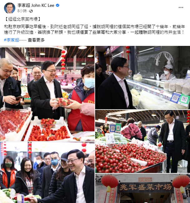 網民熱情呼應這位親民特首,推介的美食“榜首”是北京特色小吃“豆汁兒”。李家超當日傍晚與部分在京香港媒體記者見面時,採納建議品嘗了豆汁,更笑言“沒有你們形容的那麼恐怖。” 豆汁的味道如何?“有些菜味、奶味、豆味。” 李家超以初嘗豆汁作比喻,幽默地說,這次我們一起克服了這挑戰,證明團結的力量,也說明了我們只要團結,下次又可克服挑戰。 和駐京辦同事吃早餐後,李家超還到附近老胡同逛了逛。他聽說胡同裡的菜市場已經開了十幾年,前幾年進行了升級改造,舊貌換了新顔。順道買了些草莓和大家分享,一起體驗胡同裡的市井生活。 不少網友留言點贊特首很貼地、親民。有網友說:走入群眾,和市民打成一片,沒有調研就沒有發言權,支持特首李家超! 有媒體甚至找到李家超吃早點的店。據店長對媒體說,李家超是因前幾天經過時看到這家店,就堅持要來品嘗一下,“接地氣”體驗北京最普通老百姓的日常生活。 “接地氣”,也在特區管治班子中體現。 隨李家超到訪北京的保安局局長鄧炳強當日也在社交媒體曬出多張照片,寫道:駐北京的紀律部隊同事帶我到胡同的小店一嘗地道美食,地道美食加上新派咖啡,傳統同潮流結合得天衣無縫。
