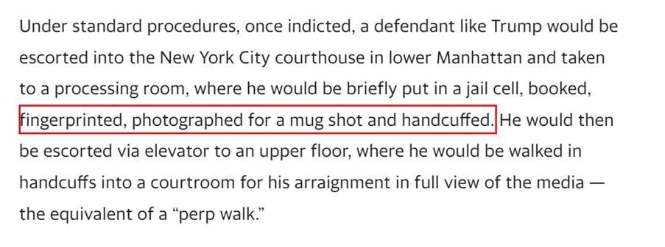 消息指出,萬一特朗普被控,最終將由秘勤局決定他是否被上銬。按照流程,特勤局安保人員將把他送到曼哈頓地區檢察官辦公室采集指紋,然後在地區檢察官偵探小組的辦公室裡拍攝面部照片。 如果自首,按照慣例,在逮捕程序結束後,特朗普將被直接帶到法官面前提審,他很可能在自己保釋後獲釋。 據知情執法官員表示,他們討論了幾個問題,包括法院的安全、特朗普支持者在法院外舉行示威或集會的可能性,以及反特朗普抗議者舉行反示威的可能性。兩個群體還有可能發生衝突。有人擔心國會大廈事件或會重演。 美國紐約市當地時間19日下午,《worldjournal》記者在川普大廈附近觀察,紐約市第五大道交通及秩序一切正常。 一切還在未知當中,明天答案即將揭曉。 (完) 【編輯:錢林霞】