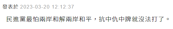 還有台灣網友一語道破道:“民進黨最怕兩岸和解兩岸和平,抗中仇中牌就沒法打了。”