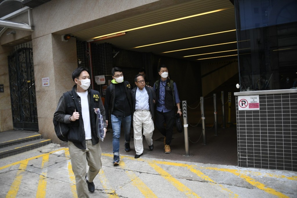 何俊仁21日被國安處人員帶離寓所。圖源:星島網 何俊仁涉嫌干擾初選案在囚證人的家屬,藉此影響有關證人作供而被拘捕。國安處人員在21日上午拘捕何俊仁,他被反手鎖上手扣,由警員押送上警方私家車離開。 何俊仁涉煽動他人顛覆國家政權罪,被還押超過15個月。直至去年8月,他以懷疑癌症復發為由申請保釋,獲高等法院批准,但要遵守宵禁令,亦不得發放或轉載可能被視為違反香港國安法、危害國家安全罪行的言論或行為及聯絡外國官員及議員。(完) 【編輯:王軼南】