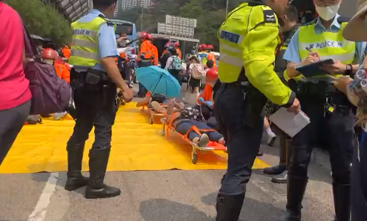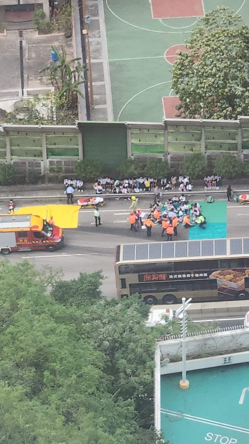 香港將軍澳道五車相撞。方國珊FB影片截圖 救護員及警方趕至現場救援,將被困的市民救出,部分人手、腳受傷。大批學生坐在路邊接受急救。有學生表示,剛結束學校旅行,乘坐旅遊巴返回學校期間發生車禍,不少同學跌倒受傷。另有學生形容,事發時猶如坐過山車,車輛猛烈搖晃。 事故共造成87人受傷,當中30人須送院治理。由於傷者人數眾多,需要由救護車分流送院治理。傷者中有1名男子情況危殆、1名男子情況嚴重,其餘22人情況穩定。 警方經初步調查後,認為意外涉及車輛切線,後方收掣不及引起,已經檢取涉事車輛內的錄影裝置。藍田消防局局長沈川表示,消防人員在接報後4分鐘趕至現場,派出43輛救護車、92名救護人員、18輛消防車、58名消防員進行救援行動。另外,亦出動坍塌搜救專隊到場協助。 因應事件,觀塘民政事務處和西貢民政事務處在基督教聯合醫院急症室設立跨部門援助站,沙田民政事務處亦在威爾斯親王醫院急症室設立跨部門援助站,為市民提供協助及查詢。 受車禍影響,將軍澳道(往將軍澳方向)近翠屏南邨全線一度封閉。至下午4時許,部分行車線解封,惟車龍仍有待消散。(完) 【編輯:孟宜君】