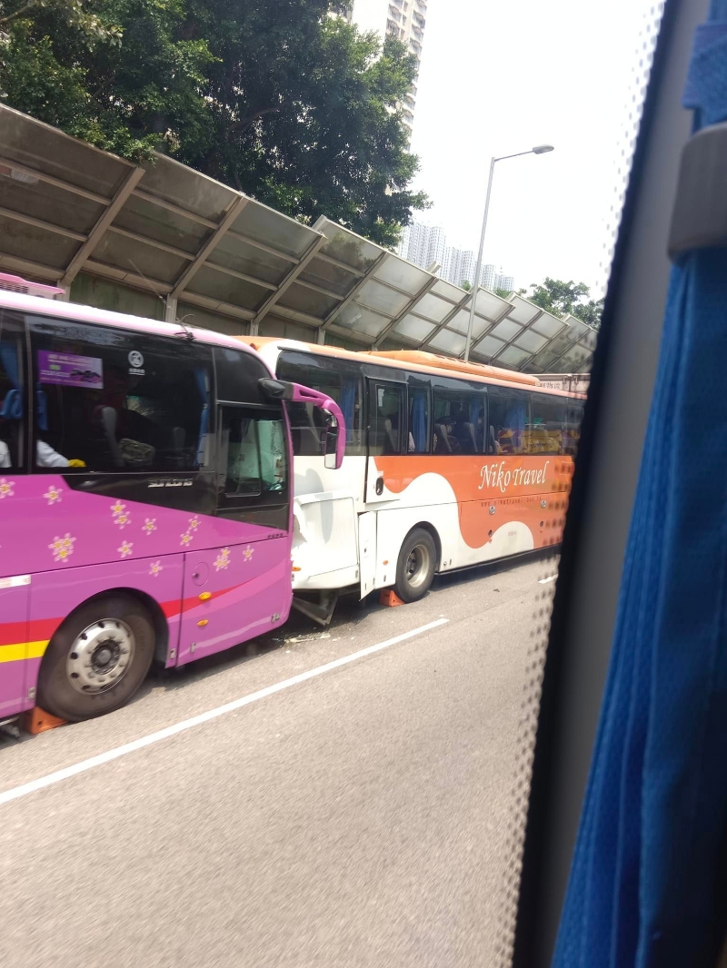 香港將軍澳道五車相撞。方國珊FB影片截圖