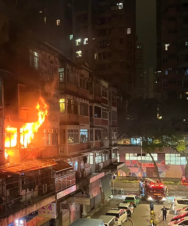 事發現場。圖源:fb群組“大埔 TAI PO” 事發在今日凌晨近3時,同秀坊3號一幢唐樓的住宅單位突然起火,現場冒出大量濃煙,火勢猛烈,單位陷入火海。附近約數十名居民需緊急疏散到安全位置。消防接報出動1條喉及1隊煙帽隊灌救,約45分鐘後將火救熄。 消防人員於起火單位救出男戶主,他陷入昏迷由救護車送院,惜經搶救後證實不治。據報,女戶主帶同愛犬逃出火場,沒有受傷。 另外,起火單位樓上的7名住戶疑吸入濃煙不適,當中包括兩名分別4歲及7歲的小童。他們分別由救護車送往沙田威爾斯醫院及大埔那打素醫院。 消防經初步調查後,不排除是拖板電線短路引起火警。(完) 【編輯:孟宜君】