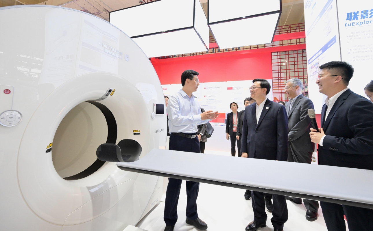 李家超(中)參觀“永不落幕”國際創新藥械展。 昨天晚上,李家超出席博鰲亞洲論壇所設的晚宴。晚宴後,李家超與海南省委書記兼省長馮飛會面。馮飛書記對李家超一行表示熱烈歡迎,對香港鼎力支持海南自由貿易港建設表示衷心感謝。他表示,海南高度重視瓊港合作,近年來雙方交流合作態勢良好、前景廣闊。期待瓊港兩地充分發揮互補優勢,完善交流合作機制,建設瓊港經濟合作發展示範區,加快推進在專業服務業、醫療健康、旅遊、零售、招商引才等領域合作,促進香港青年來瓊創新創業,推動瓊港合作走深走實。 李家超就指,今年的博鰲亞洲論壇年完全以線下方式舉行,他很高興上任後首次親赴海南參與這年度盛事。他指出,香港專業界別的豐富經驗和在國際上的聯繫,可為海南建設自由貿易港提供助力。特區政府很高興和海南省人民政府攜手合作,積極探討相關措施,鼓勵香港專業服務業界和青年到海南交流和發展,創造互利共贏。