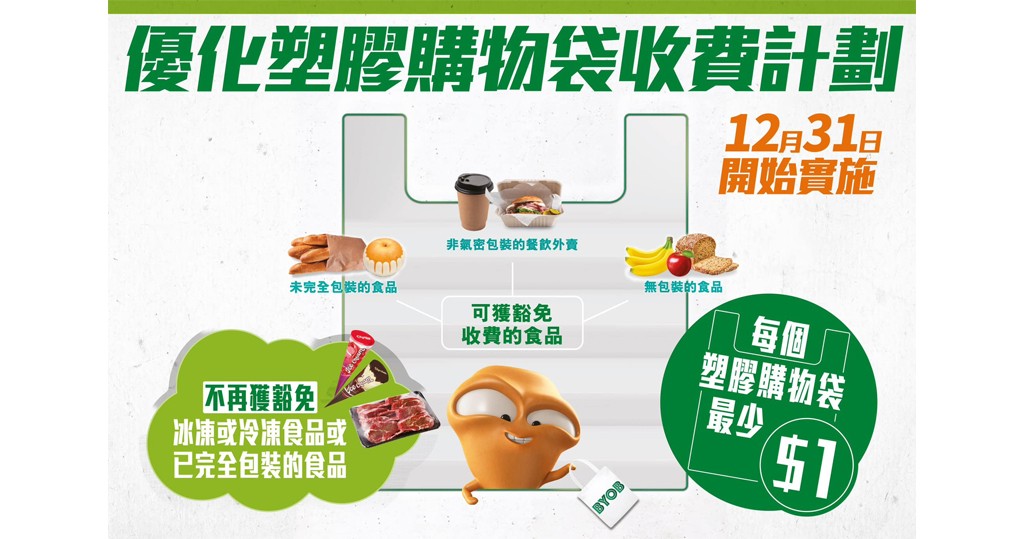 香港新聞網3月30日電 環境保護署(環保署)表示,優化塑膠購物袋收費計劃(優化計劃)去年12月31日開始實施後,今年首兩個月主要零售商的塑膠購物袋派發量大幅下跌。 根據環保署向香港主要零售集團(包括大型連鎖超級市場和便利店)查詢所得的資料,與去年同期比較,今年1月至2月的塑膠購物袋(不包括平口袋)派發量整體下跌超過6成,主要大型連鎖超級市場的平口袋派發量更下跌超過8成。