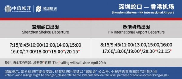 香港新聞網4月6日電 為迎接五一假期,進一步便捷旅客出行,滿足旅客經蛇口郵輪母港出入境的常態化需求,自4月29日起,深圳航運集團鵬星船務將聯合招商迅隆增開深圳蛇口至香港機場往返航線航班。