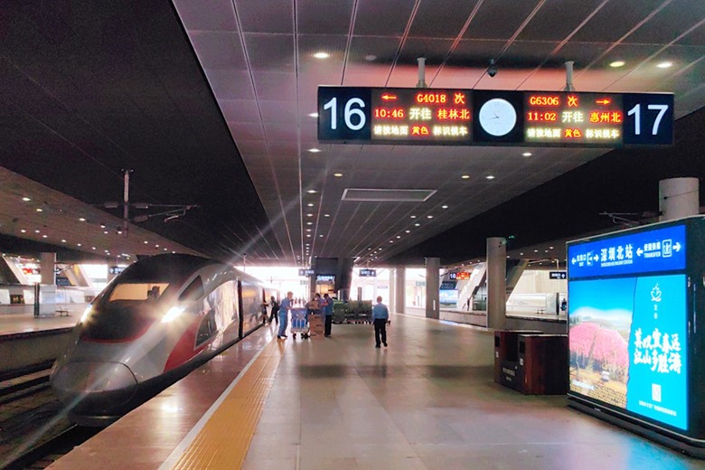 圖為G4018次旅遊專列停靠深圳北站。圖來自廣東鐵青文旅公司 據悉,這也是今年以來,珠三角鐵路首次開行的高鐵動車組旅遊專列;該專列由廣東鐵青文旅公司根據香港復活節假期旅客出遊需求定製開行,旅客全部來自香港。 “該專列4月7日從深圳北站開出,4月10日再由桂林北站返回,採用的是復興號車體,乘坐舒適。”廣鐵集團客運部相關負責表示,旅遊專列產品具有定時、定點、定線等特點,旅客不必擔心車票和時間問題,更契合現代人“快旅慢游”的出行節奏,旅遊變得更加輕鬆愜意。 據瞭解,今年以來截至4月7日,廣鐵集團已根據旅客出行需求,開行了15趟普速和1趟高鐵旅遊專列,主要有深圳去往井岡山、炎陵、桂林,長沙去往炎陵、韶山,懷化去往衢州,張家界去往綿陽等,運送旅客約1.6萬人次。(完) 【編輯:許豐悅】