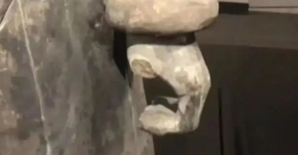 在美國展出的兵馬俑被掰斷手指。圖源:橙新聞 該案件發生於6年前,2017年12月21日,邁克爾·羅哈納在聖誕節派對後,偷偷溜進已經閉館的博物館展廳,掰斷并盜走了正在美國展出的“騎兵俑”左手拇指,還在黑暗中與兵馬俑合影。