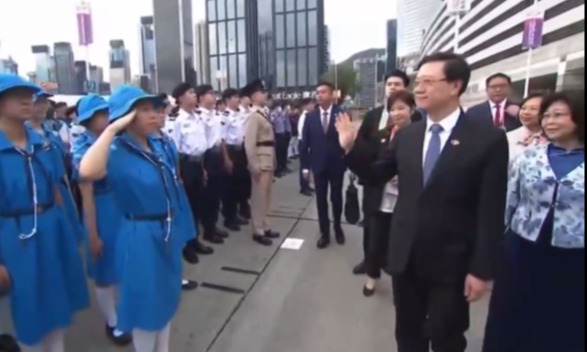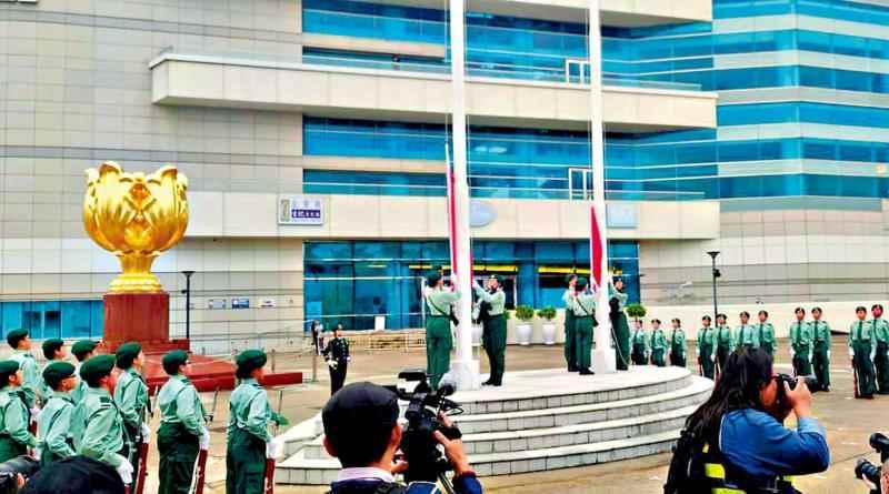 受新冠疫情影響,由香港青少年制服團體輪流負責的金紫荊廣場升旗儀式暫停了38個月。昨日(9日)是復常後的首次升旗禮,由香港青少年軍總會的“國旗護衛隊”擔此重任。