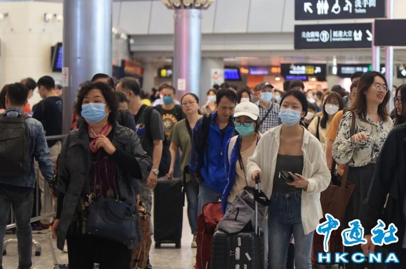 香港中通社資料圖片 昨天,大批市民拉著行李箱回港,多個陸路關口都大排長龍。其中羅湖口岸下午起湧現回港人潮,附近的商業城外人頭湧湧,工作人員需架起圍欄以作分流。不過有旅客表示,當天羅湖口岸過關毋須掃健康申報二維碼,加上閘機全開,所以即使人流較多,但過關過程仍然很順利。 至於接駁羅湖及落馬洲口岸的港鐵東鐵線列車,前往市區方向的車廂亦擠滿了乘客。而高鐵西九龍站的抵港大堂不斷有旅客抵達,附近的巴士站及的士站亦同樣出現“人龍”。 6天的復活節和清明節長假期,香港共錄得逾650萬出入境總人次。據入境處數字顯示,復活節長假首日(4月7日)最多人出境,達45.4萬人次,而昨日為入境高峰期,達55.3萬人次。 有商場表示,長假期帶旺人流,珠寶金飾及電子影音產品銷情最理想,有商戶生意額按月激增50%。當中位於港鐵東鐵綫沿線、新鴻基地產旗下的沙田新城市廣場,營業額及整體人流在長假期間亦錄得2成升幅。(完) 【編輯:孟宜君】