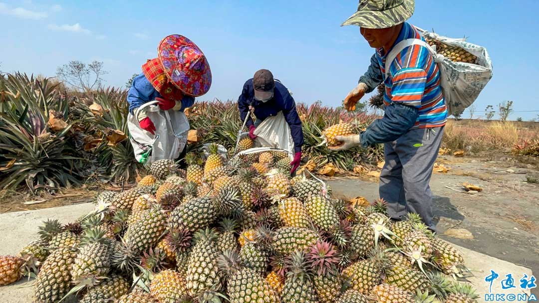 進入四月,台灣迎來鳳梨盛產季節,由於今年雨水少,台灣南部許多鳳梨農表示,出現不少裂果的情況,加上今年產量是最近五年新高,農民擔心出現價格崩盤。香港中通社圖片