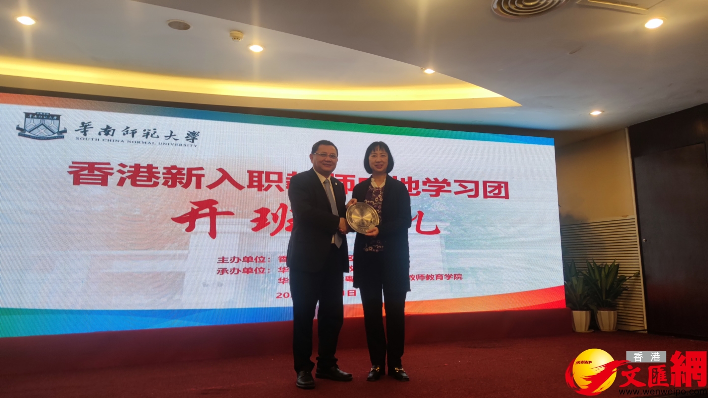 華南師範大學校長王恩科與香港教育局常任秘書長李美娥互贈紀念品。圖源:香港文匯網 保良局志豪小學教師鍾永美是一名年輕的數學老師。她笑言自中學後已經很久沒踏足內地,這次交流讓她眼界大開,認為內地教學模式有很多值得借鑒的地方。明愛元朗陳震夏中學教師陳志聰告訴本報,這是他第一次到內地進行教學交流。“我希望上來向內地學校取經,了解內地有什麼流行的教學方式,自己可以吸收用到教香港學生,有這樣的交流機會很難得。” 中華基督教會方潤華中學教師黃穎珊告訴記者,這次交流對於自己的職業生涯也是寶貴的經驗提升。“我希望親身走訪過內地的中學和大學之後,可以幫自己的學生留意大灣區的發展機會,和到內地升學發展的方式,回去後也能和他們講內地的發展狀況。” 據了解,本學年香港將舉辦7個新入職教師內地學習團,地點包括大灣區內地城市、北京、上海和武漢,為期3至4天。是次到廣東交流的學習團為首發團。 (完) 【編輯:王軼南】