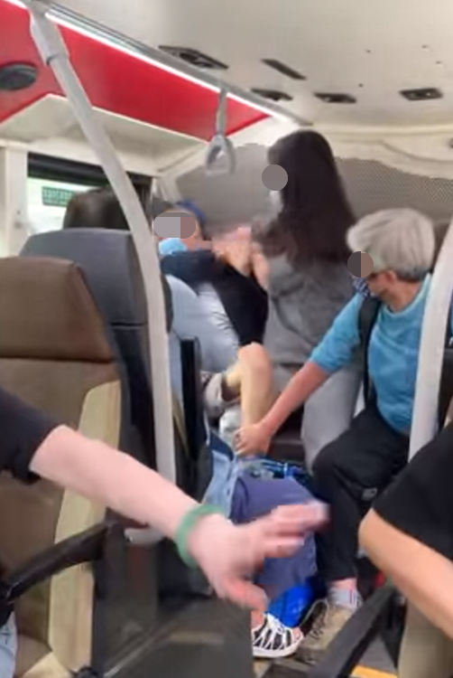 香港新聞網4月12日電 香港一輛巴士車廂發生大混戰!一名戴有口罩的老翁疑因咳嗽,引發鄰座3名乘客不滿,被眾人圍毆襲擊。 近日社交平台瘋傳一段影片,可見巴士車廂內一名身穿灰色上衣、戴有口罩的女子,向鄰座老翁施以連環拳。短短20秒內連出16拳,拳拳到肉。老翁多次被擊中頭部,帽及眼鏡亦被打至飛脫。老翁一度企圖反擊但不果,反被附近一名白髮男乘客按著腳部,而對面一名老婦亦以拐杖不斷插向老翁。全程不斷有乘客在旁勸阻,高呼停手,惟3人未有理會,更愈打愈起勁。