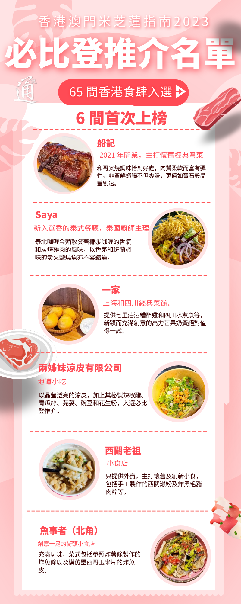 今年共有65間香港食肆入選,當中有6間為新上榜。香港新聞網為大家整理出65間食肆名稱,並介紹了新入選的6間食肆的特色。
