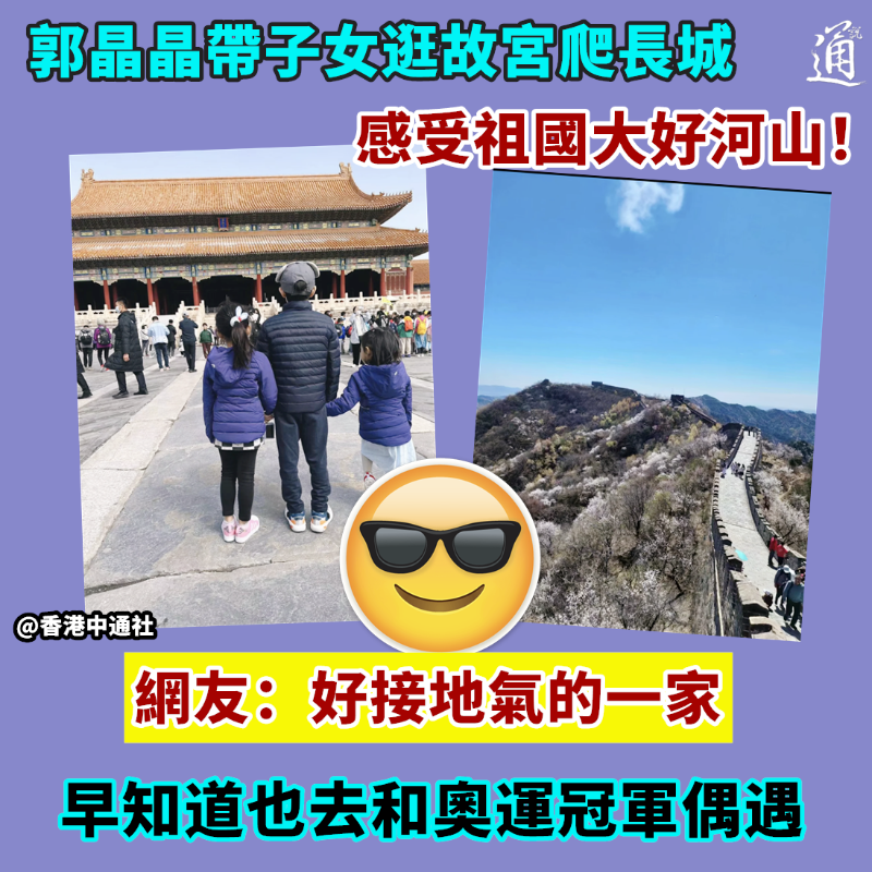 (圖源:郭晶晶小紅書) “跳水皇后”郭晶晶與港協暨奧委會副會長霍啟剛結婚後,一直定居香港。加上近年受疫情影響,兩地長時間未能恢復正常通關。因此,見取消防疫限制後,郭晶晶即帶子女遊覽北京,不少內地網友十分興奮。 郭晶晶的最新帖文發出後,已收獲約1.1萬名網友點讚、近300人留言。有網友表示,“謝謝你讓我看見了北京的風景”,“希望以後有機會帶孩子一起去感受一下”, “風景美、照片美、心也美”。 “好接地氣的一家。”也有網友“懊悔”地說:“早知道昨天也去和奧運冠軍偶遇”。