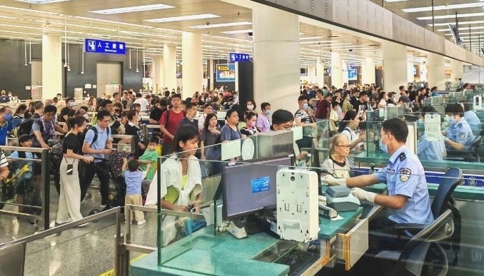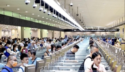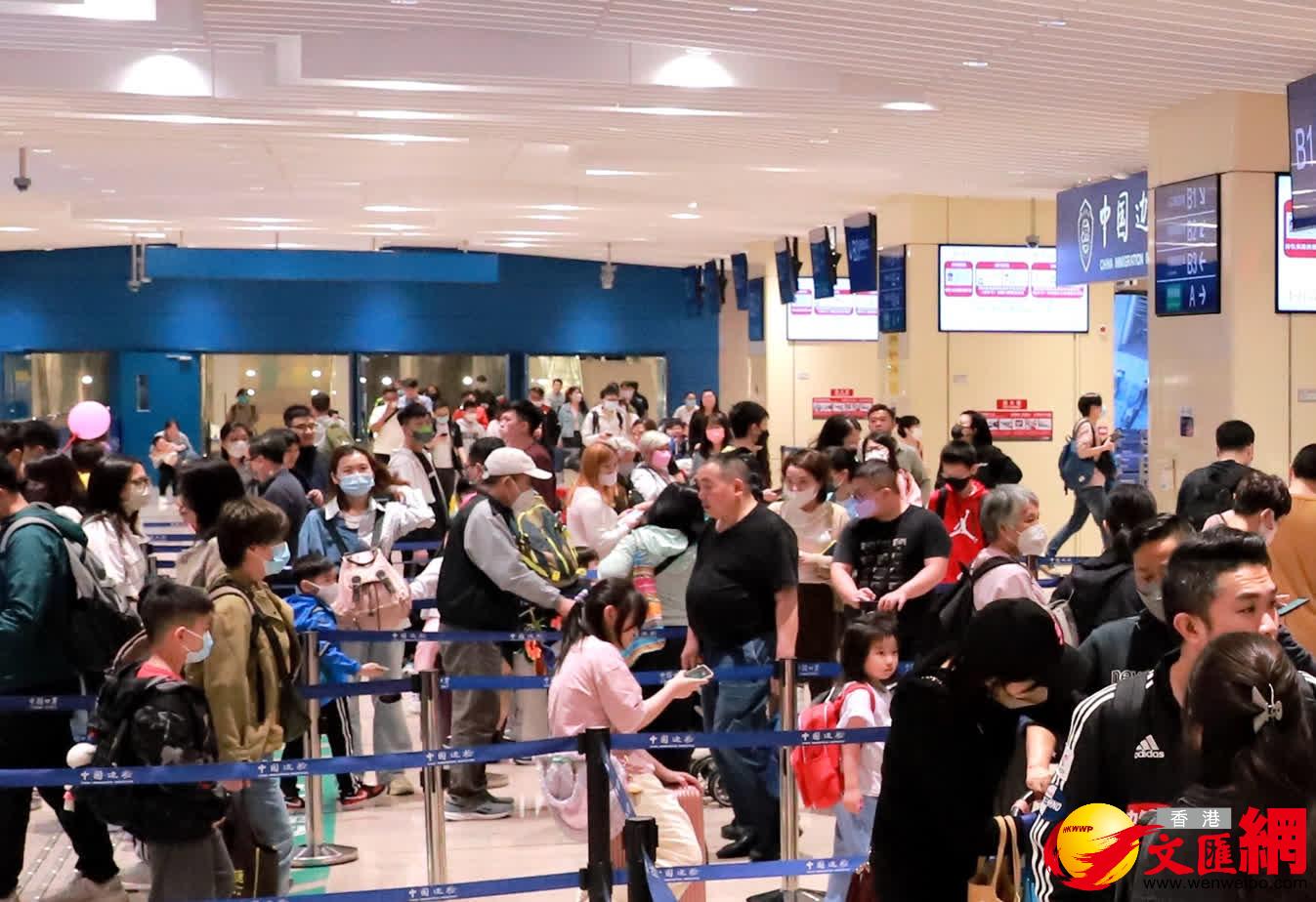 青茂口岸今年第一季度客流同比增一倍。(香港文匯網記者 方俊明 攝) 據青茂邊檢站統計,4月11日是部分港澳居民公眾假期最後一天,當天經青茂口岸出入境旅客突破7.2萬人次,較公眾節假日之前增長約16.6%;在出入境最高峰時段,青茂邊檢站每小時查驗旅客近5000人次。 青茂邊檢站表示,面對口岸客流“大進大出”“快進快出”的疏導任務,該站及時調配警力部署、設置蛇形通道、優化快捷通道信息備案採集,在高峰時段增加兩處臨時人工通道。同時,該站加強與口岸單位、澳門方面的協同配合,保障人員順暢通關。 【編輯:丘志彬】